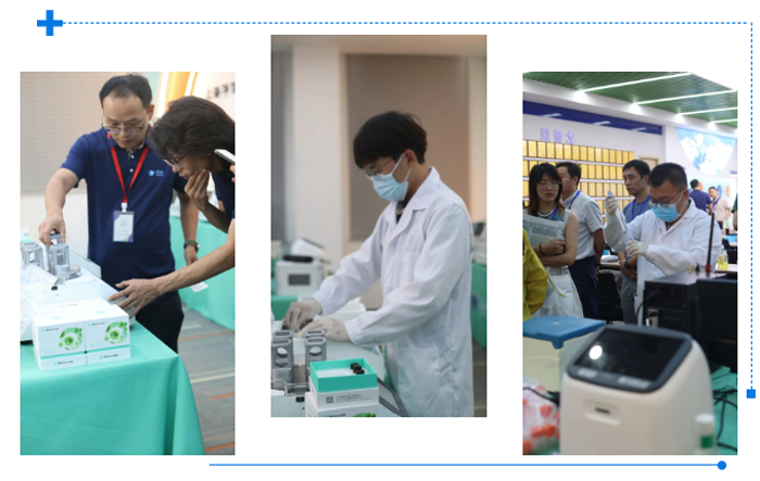 代理商們分組參觀,在技術(shù)人員的操作下,體驗了“樣本剪碎→酶體系配置→恒溫酶解→細(xì)胞過濾→活性檢測"的全流程操作。實操過程中,技術(shù)團隊針對不同區(qū)域客戶的需求特點,提供定制化建議:比如來不及立即制備的樣本,推薦“高效組織保存液"保存后,再進行實驗;針對“批量樣本處理"需求,搭配批量解離單細(xì)胞懸液制備儀進行。貼心準(zhǔn)備了小規(guī)格試用裝,簡潔的操作說明書,免費試用無憂。