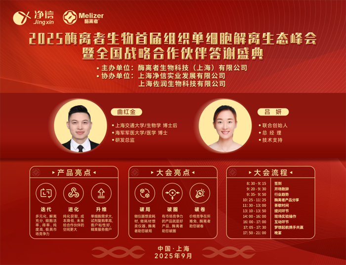 2025年9月15日,深耕單細(xì)胞解離領(lǐng)域的酶離者品牌,在品牌總部研發(fā)中心盛大召開2025國內(nèi)代理商大會。來自北京、上海、廣州、深圳、成都、西安等28個省市的代理商伙伴齊聚一堂,圍繞“技術(shù)賦能、市場協(xié)同、共贏增長"核心主題,共同學(xué)習(xí)酶離者全系列產(chǎn)品應(yīng)用,探討國內(nèi)市場的開拓策略,凝聚合作共識,攜手開啟單細(xì)胞解離技術(shù)推廣的新征程。